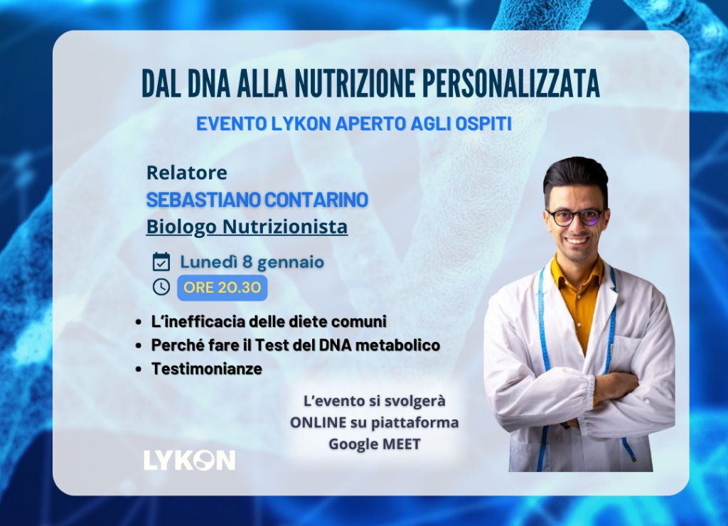 Il Dr Sebastiano Contarino, Biologo nutrizionista, ci parlerà dell'inefficacia delle diete comuni sul lungo termine e perché fare il test del DNA metabolico. Ci saranno testimonianze di chi ha già … Leggi tutto Dal DNA alla nutrizione personalizzata